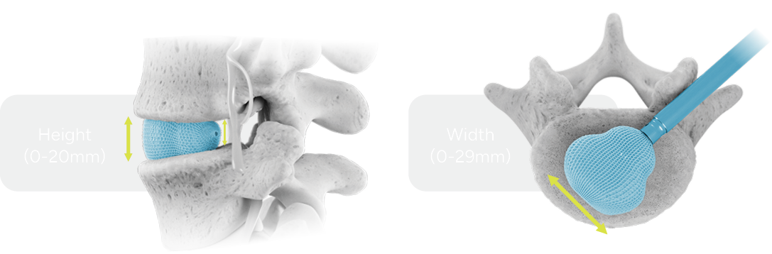Continuous expansion of height (0-20mm), width (0-29mm), and lordotic shape (0-20˚).
